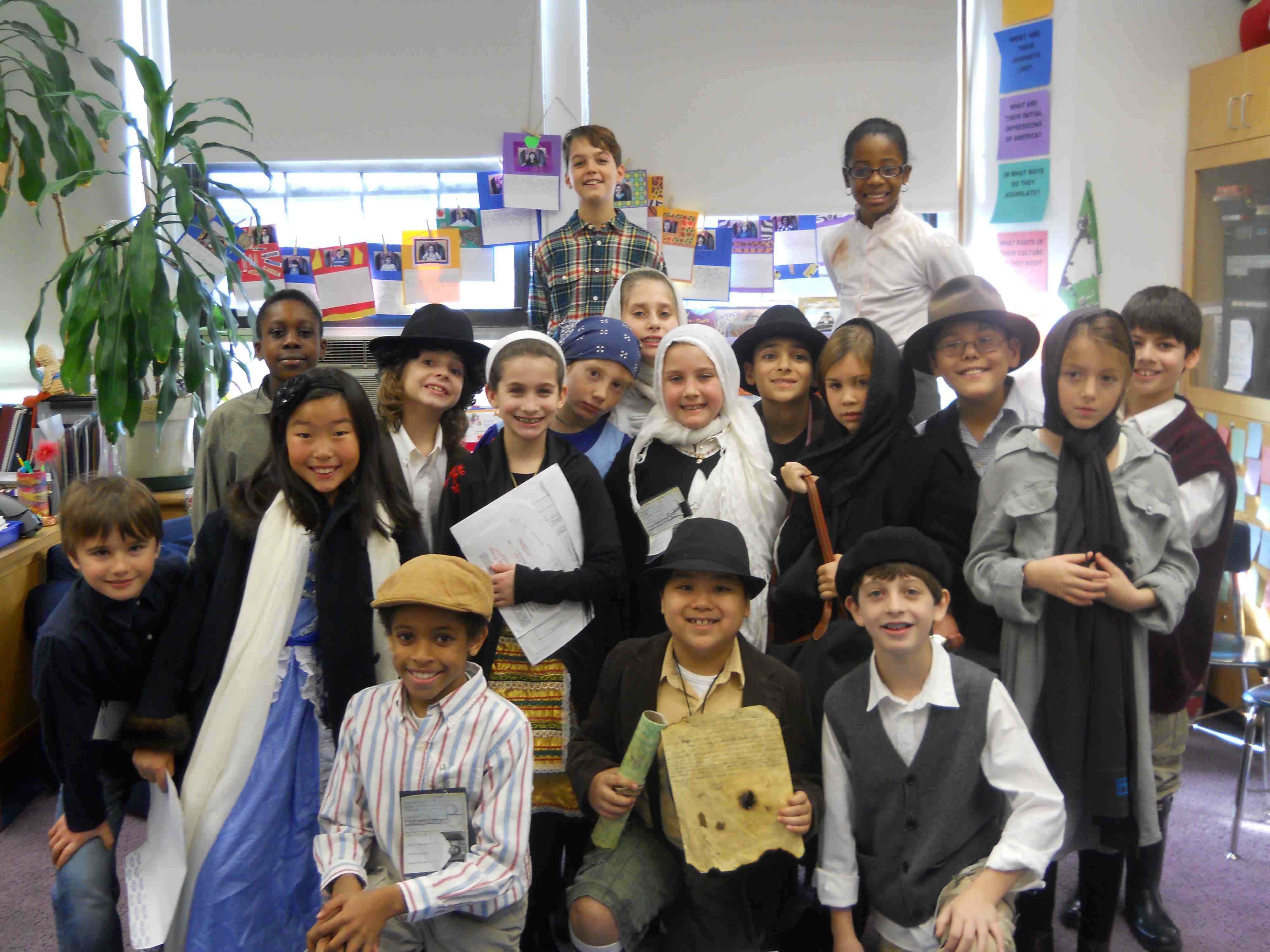 Today on the 9th floor, dozens of new immigrants from across Europe were processed at Ellis Island. Communists, Socialists, Monarchists, Believers in Democracy, Catholics, Jews, atheists, agnostics, and Protestants all gathered here with one goal – to become American Citizens. The old, the young, the strong, and the feeble underwent intense questioning about their characters, vocations, and health. Some were almost turned away (and one was deported), but many took the loyalty oath, pledging their allegiance to the flag of the United States of America. Thank you to all of the teachers, administrators, parents, and costume consultants who made this grade wide event possible.